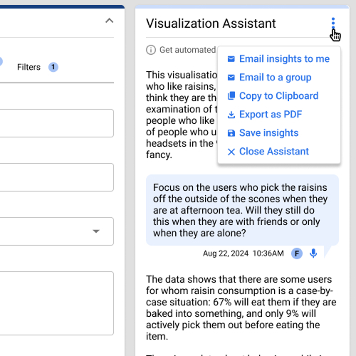 We needed a way for visualisations and documents built by the user to be used to generate an AI analysis of their data.