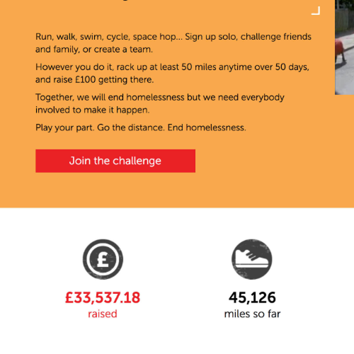 Crisis the homeless charity wanted to hold a virtual fundraising event where fundraisers were asked to cover 50 miles in 50 days, and raise £100.