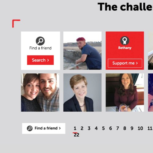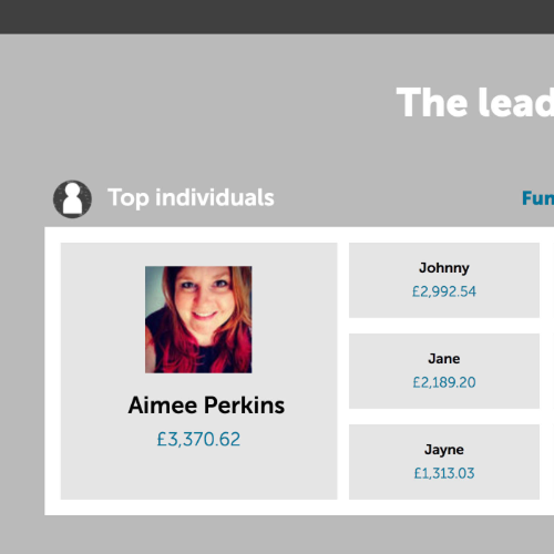 We implemented some custom widgets in the page such as totalisers, leaderboards and a supporter wall, which shows a random selection of the fundraisers (their photos, name and a button linking to their supporter page).