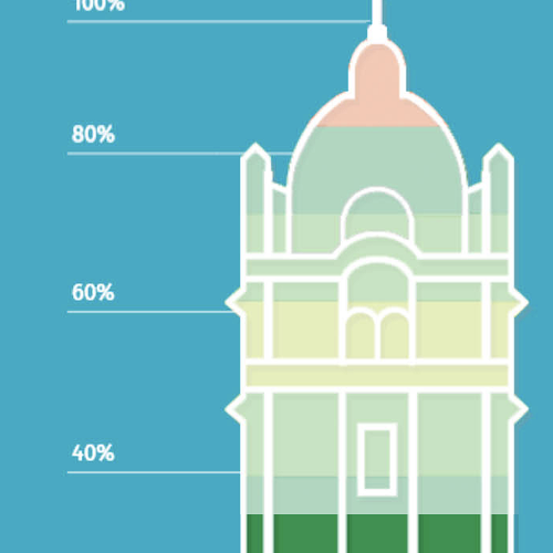 - The challenge was showing statistics in a more interesting way. I experimented with the idea of bar graphs which grow on load, and also colour-coding the different groups of people to make the graphs easier to digest. The overall totaliser is the university's landmark tower, which fills with colour as money is raised