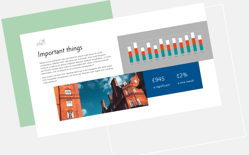 Our first iteration of the document builder feature is quite basic and templated - as a result the documents end up looking quite similar so we decided to do an exercise in creative report design to see what the possibilities are, and what we can transfer to future iterations of the document builder.