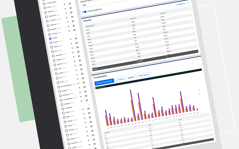 The Visualisation Builder is the functionality which allows users to create new visualisations (charts, graphs, data tables) using custom data configurations.